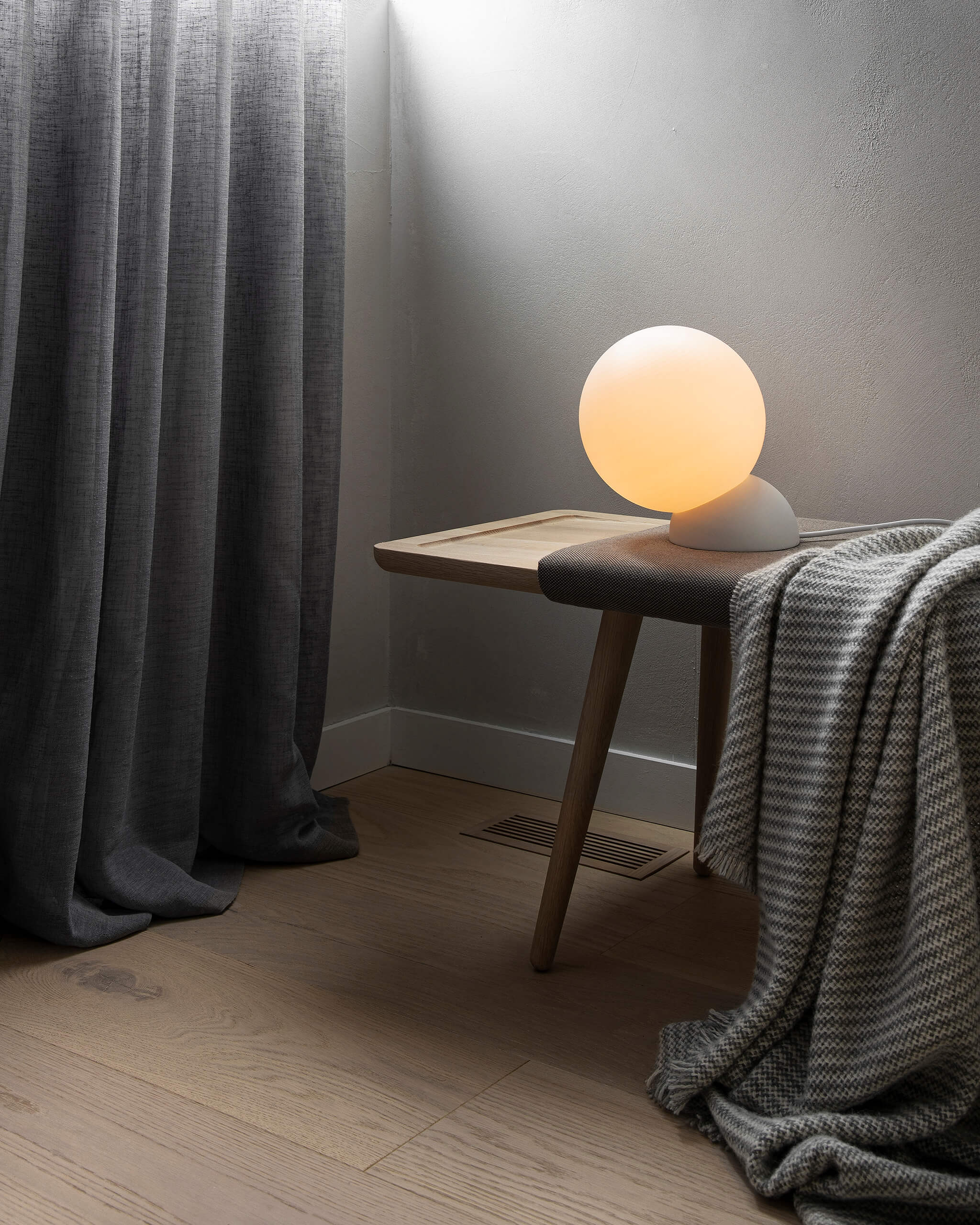 Arch a Floor Light over one side of the couch and place a Table Light on the end table on the other side to create an entertainment zone. Having the two lights placed opposite each other -- aiming their light specifically at the couch and coffee table -- creates the illusion of a separated space. Continue this effect throughout your apartment by mounting a Wall Light over your hall tree or credenza to bring attention to the entryway and delineate that space from the rest of the room. Consider placing Wall Lights throughout your studio apartment to help separate out different zones. Gantri’s Wall Lights -- like the -- are space-saving and lightweight, with effective, dimmable light that can easily illuminate a space without overwhelming it. The footprint of the lights should be wide enough to illuminate this space alone, stopping short of continuing into other areas of the room.